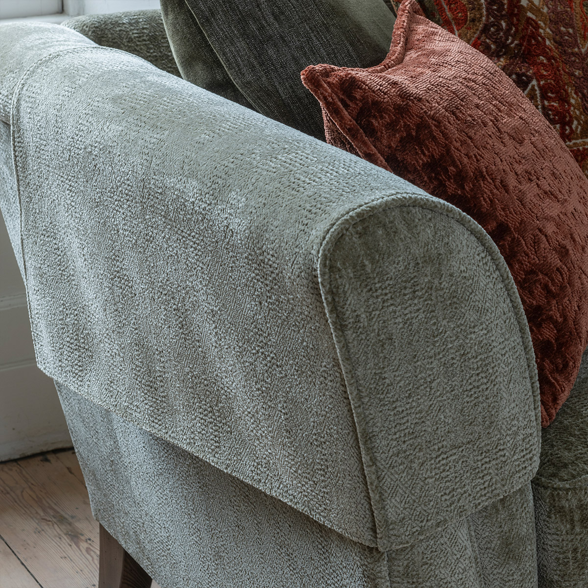 Darwin is a classic sofa celebrating nature, diversity, and exploration, inspired by Darwin’s theory of evolution. Its elegant silhouette features flowing lines and a well-proportioned arm, blending sophistication with timeless design. Fabrics showcase Tree of Life motifs in woven velvets, paisley patchworks in deep greens, henna, and ochre, and oversized botanical patterns in sculpted velvets—echoing Darwin’s studies of flora and fauna. Resting on FSC-certified Ash legs, with or without brass castors, the sofa offers a choice of finishes for a rustic touch. With multiple sizes, back cushion options, and a striking two-tone accent chair, it’s a statement piece for any space.