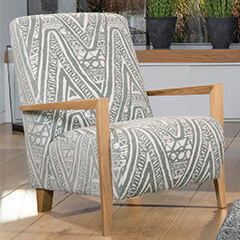 Accent chair in fabric 3037, show wood arms in light oak. Grand sofa in fabric 3707, large scatter cushions in 3037, satin nickel legs. 3 seater sofa in fabric 3623, large scatter cushions in 3037 light oak legs.