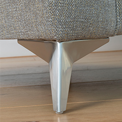 A contemporary sofa featuring beautiful new fabric ranges of super smooth tactile fabric through to luxurious chenille’s, mixing bold colours with geometric accents. The streamlined design, finished with angular polished metal or wooden legs will suit the contemporary home whilst the deep button back is perfect to sink in to. The Bali Accent chair with its angular arm detailing works in harmony with the fabrics and legs of this sofa.