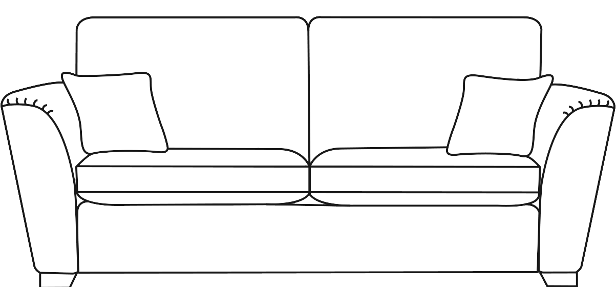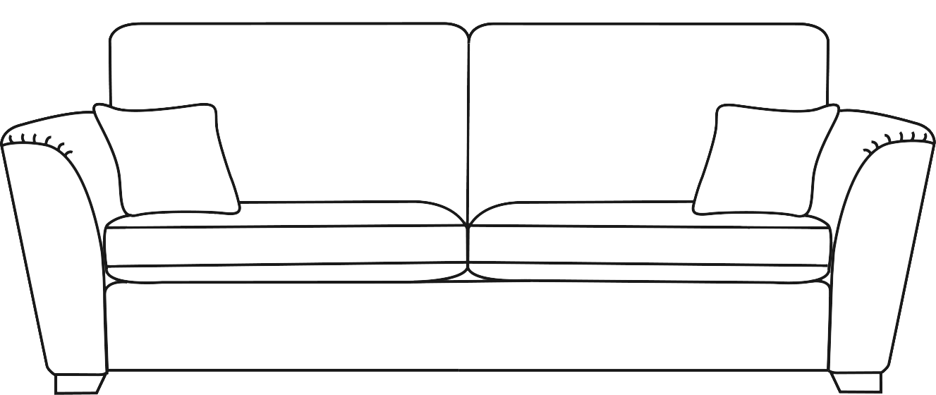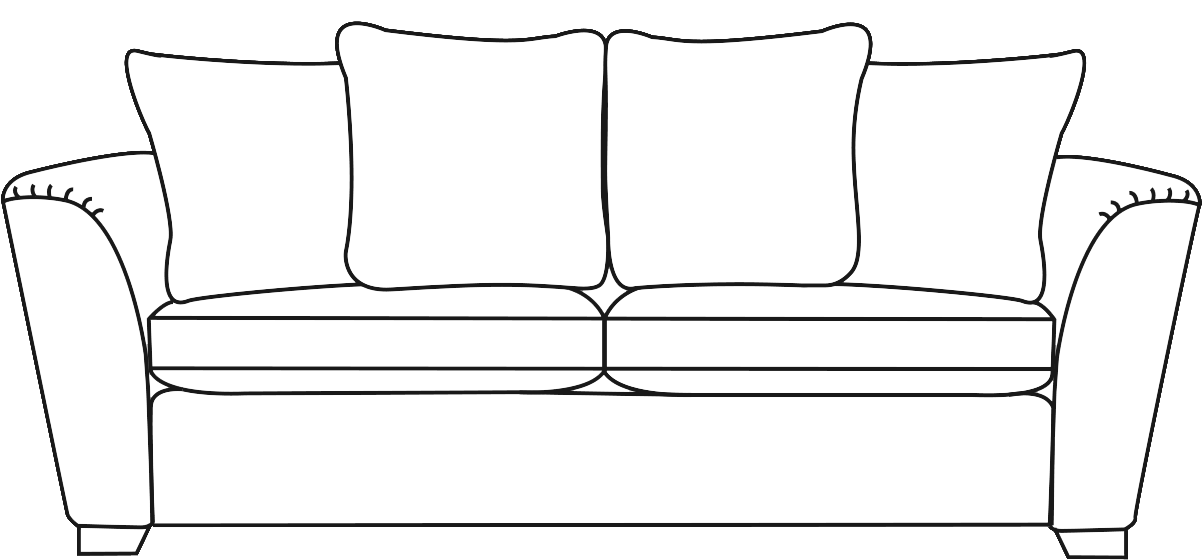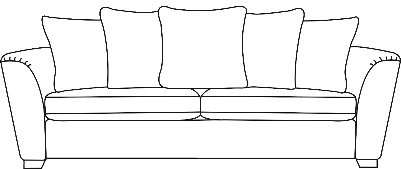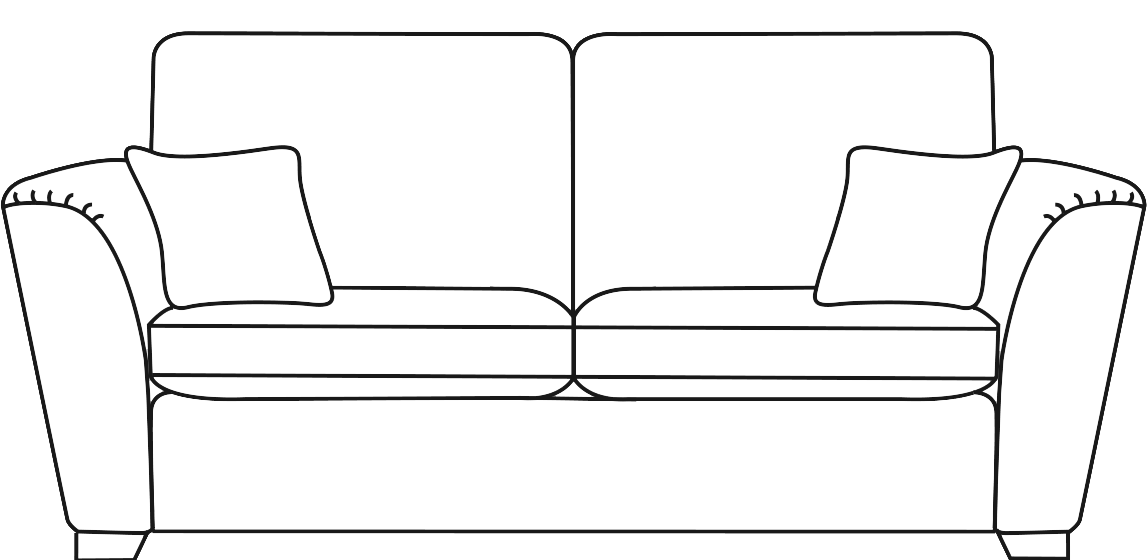 3 seater sofa/sofabed in fabric 1897, large scatter cushions in 1523, dark feet. 2 seater sofa/sofabed in fabric 1893, small scatter cushions in fabric 1523, dark feet. Fixed Back Accent chair in fabric 1897, chrome legs only.