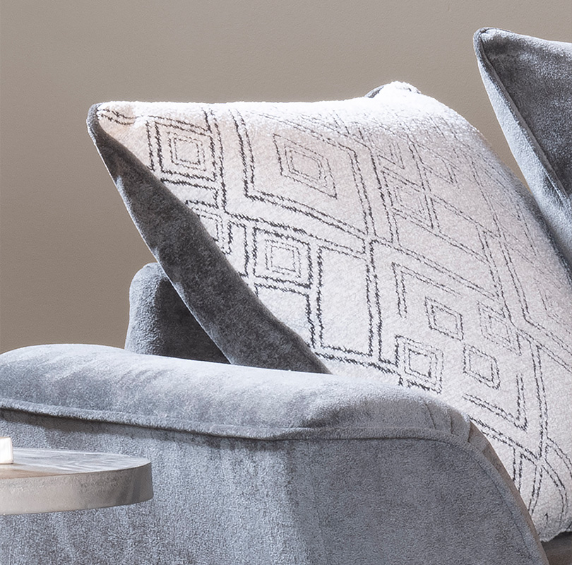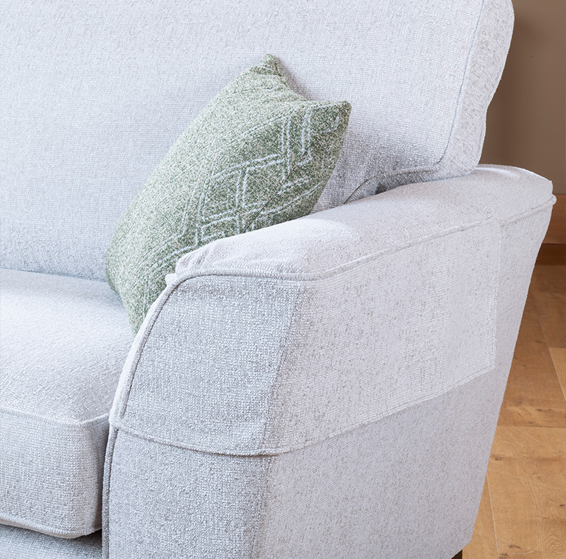 The Tasman collection has a contemporary design, exceptional comfort, and versatile styling. The choice of standard back or pillow back options, combined with soft angled arms and cold cure seat cushions, really stand out for both comfort and quality. The mix of durable chenille and boucle plains in soft, neutral tones, contrasted with bold velvet accent pillows is a clear hit.