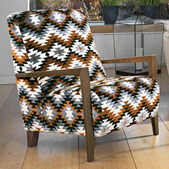 A contemporary sofa featuring beautiful new fabric ranges of super smooth tactile fabric through to luxurious chenille’s, mixing bold colours with geometric accents. The streamlined design, finished with angular polished metal or wooden legs will suit the contemporary home whilst the deep button back is perfect to sink in to. The Bali Accent chair with its angular arm detailing works in harmony with the fabrics and legs of this sofa.